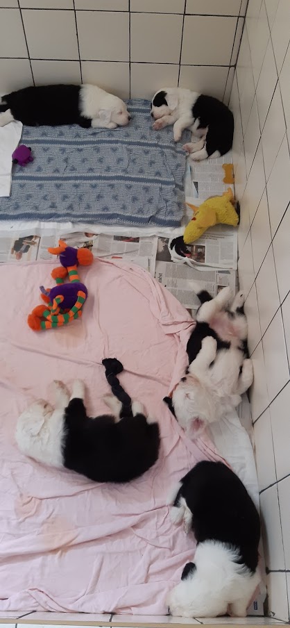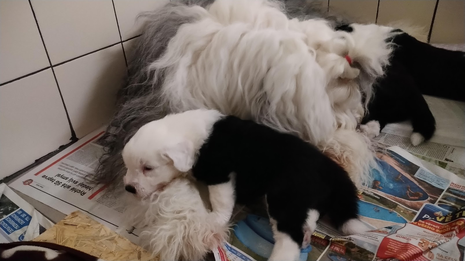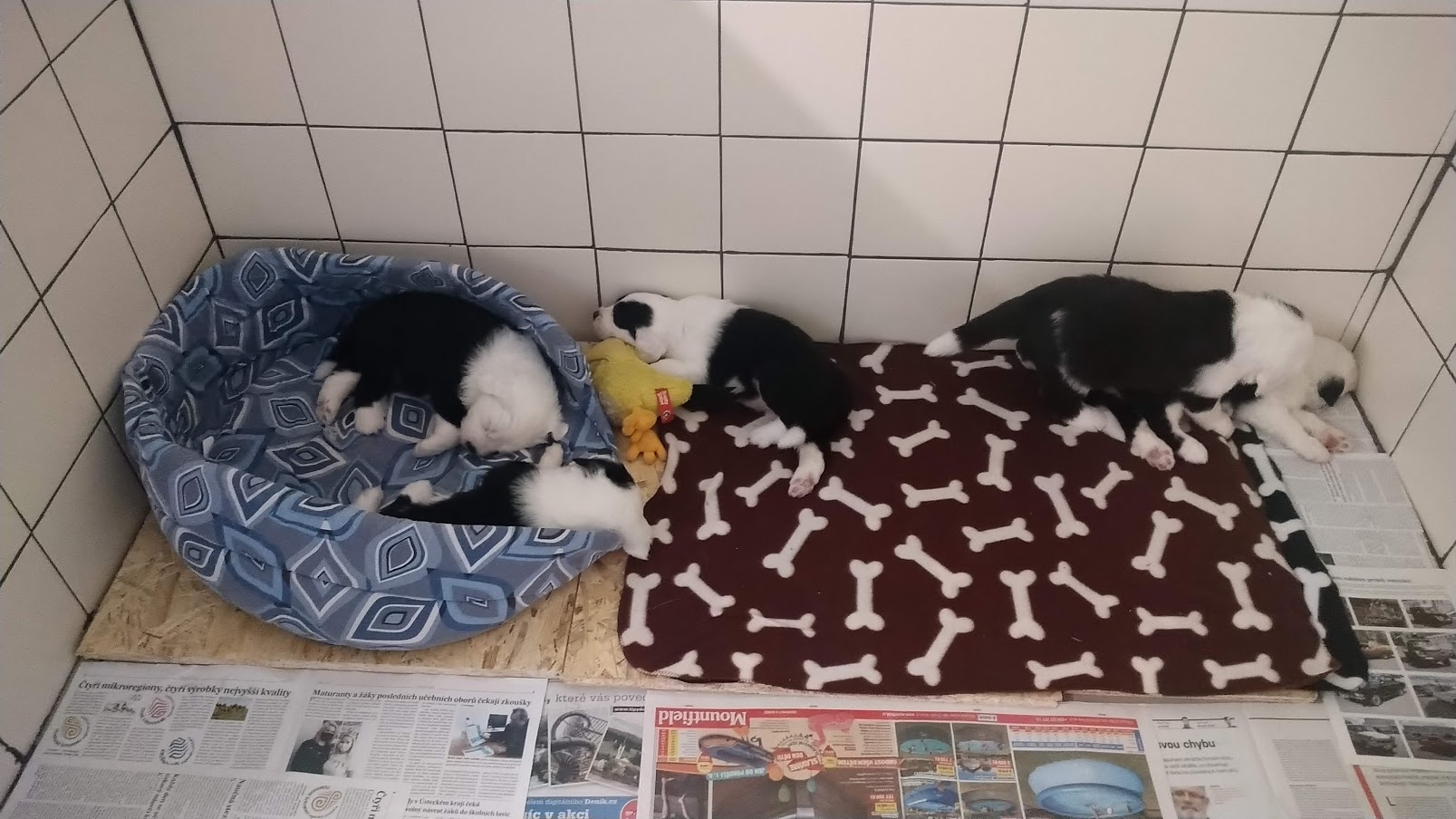 Štěňátka jsou přestěhované do psí místnostiNapsal Denisa Bohuslavová / 8. 7. 2020 Už nám byla porodní bedna malá a utíkali jsme po místnosti. Tak nás páníčkové přestěhovali do psí místnosti. Je tu prima, není tu horko. Maminka nás chodí kontrolovat. Barevná opice se Monince líbila, tak si jí odnesla. 🙂