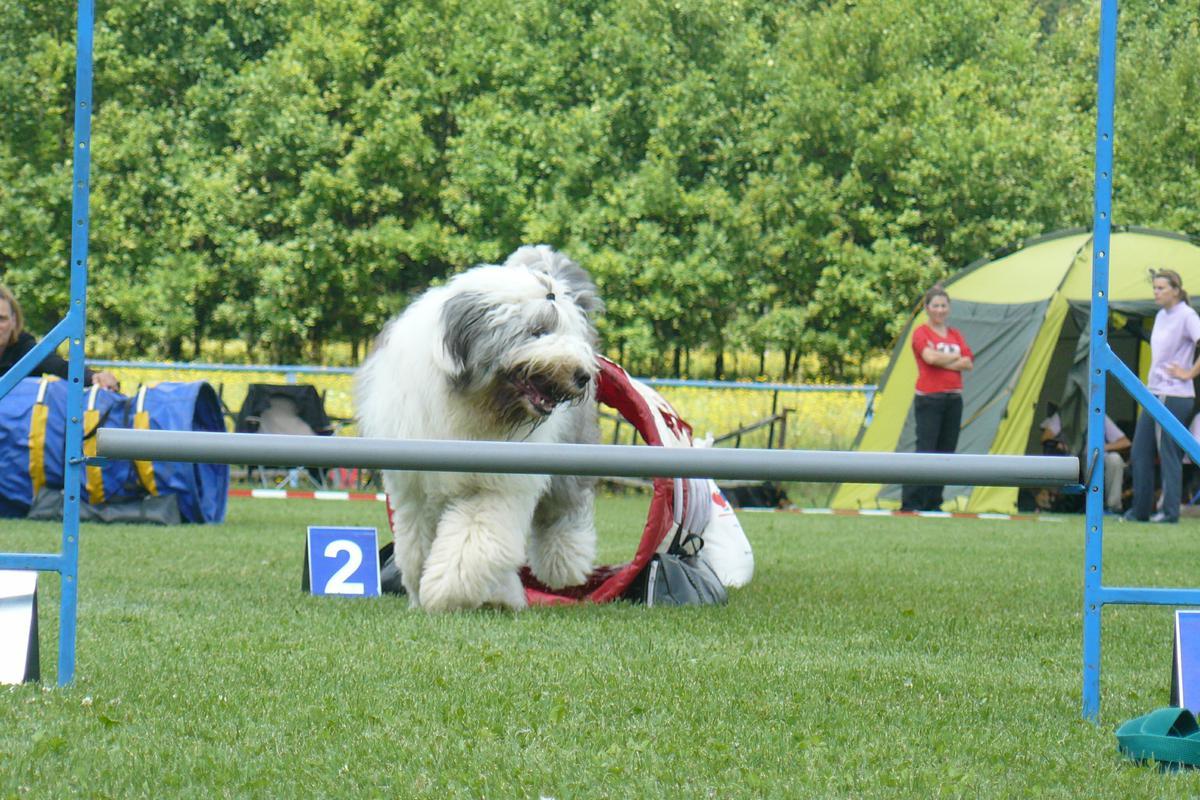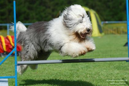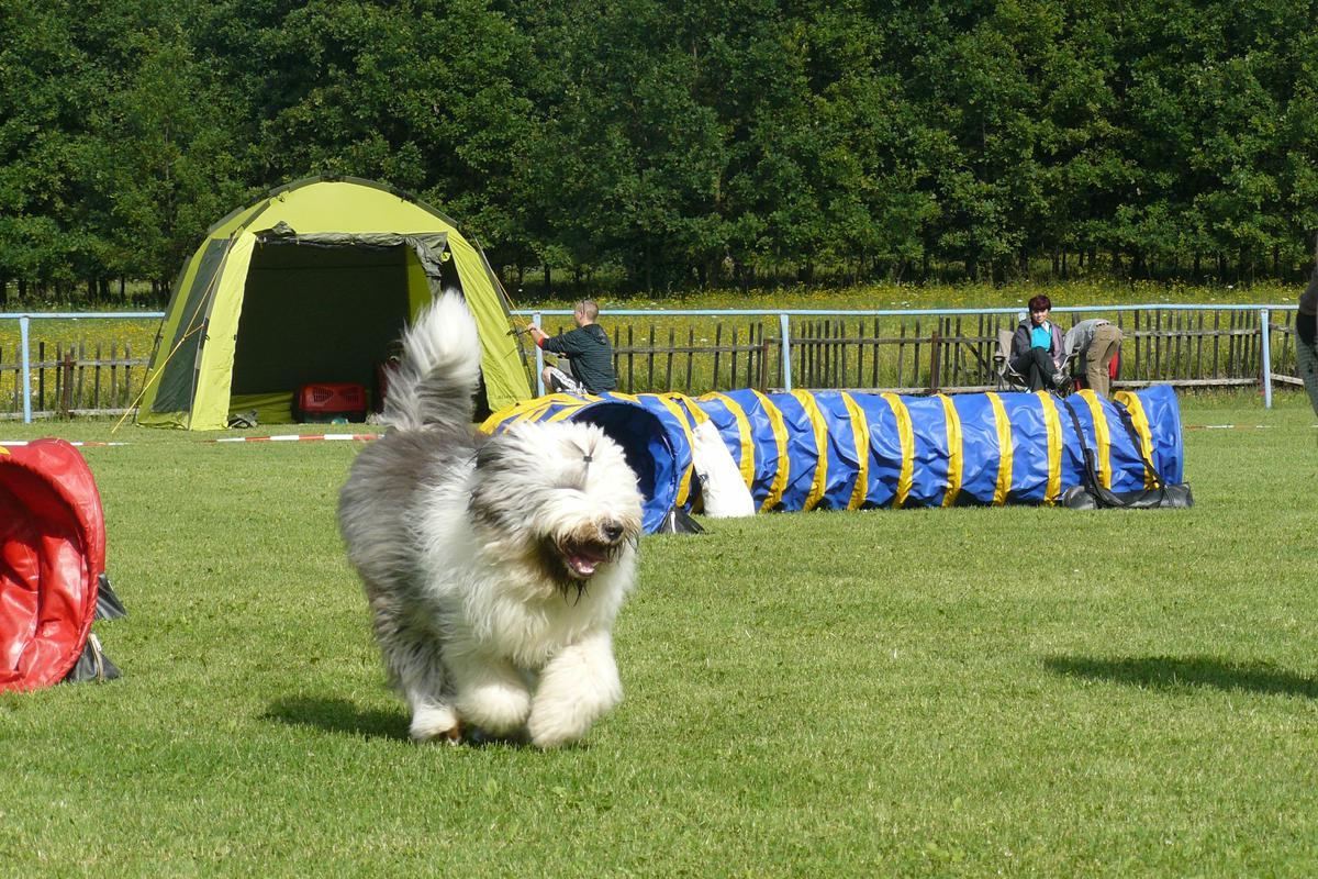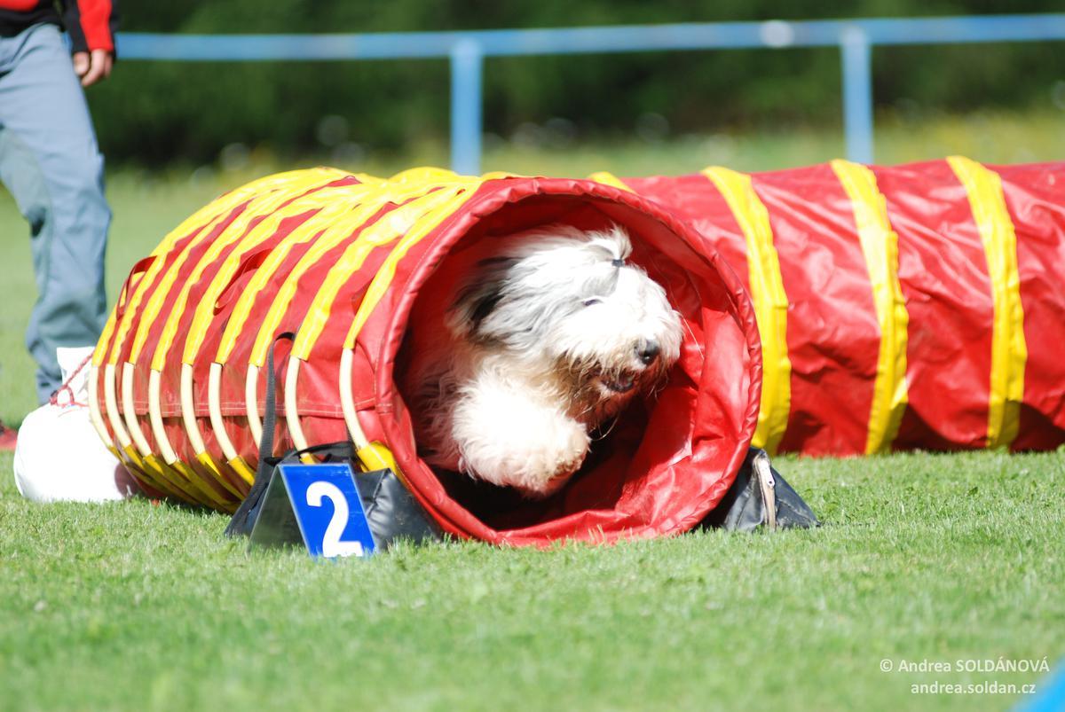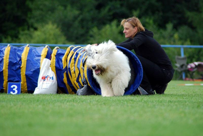 We bought Tobíček – Jaguar aus dem Elbe-Urstrumtal as teammate for Spicy. I practiced agility with Tobíček. And he was excited about agility. Tobíček always ran off the track and went to greet first all the trainers of my favorite ForPets trainer and then he came back and continued running agility parkour. He enjoyed learning every new obstacle, most loved the beam and the swing. We had agility for fun, the bobtail is a heavy dog and thus is slower than other breeds in the race. But as there was a beam on the track, Tobíček’s favorite obstacle, Tobík walked it twice and sometimes three times. We tried coursing with the boys, they caught on for the first time, they both ran after the tassel until the end.