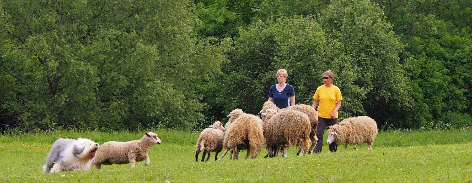 We also tested whether our bobtails have pastoral talents. Spicy – our great champion, who did not enjoy agility training at all, when he met a flock of sheep, he started flying around the sheep so fast and round that we had to catch him to exhale and not fall. Then we let him go around the herd again. And suddenly he stopped and something clicked in head, he realized, what is he supposed to do. He only started to run correctly in quarter quarters and pushed the herd right on us. Tobíček, who practiced agility, watched and waited to see if I would give him orders, after pointing his hand, the herd also began to push towards us. They both remembered the pastoral background and the escort of the flock of sheep.