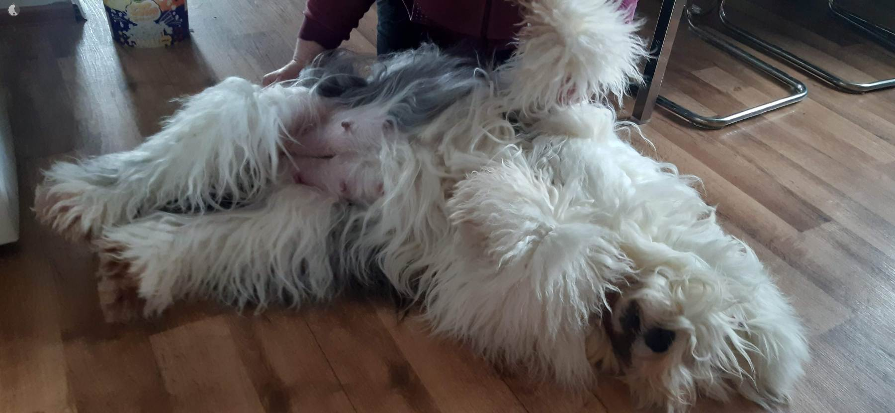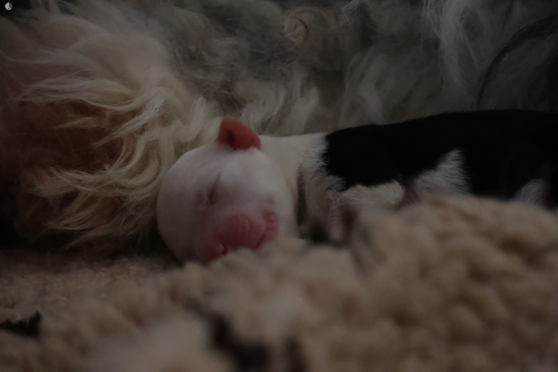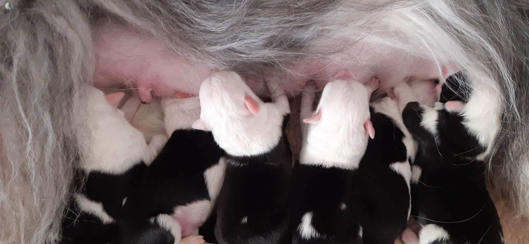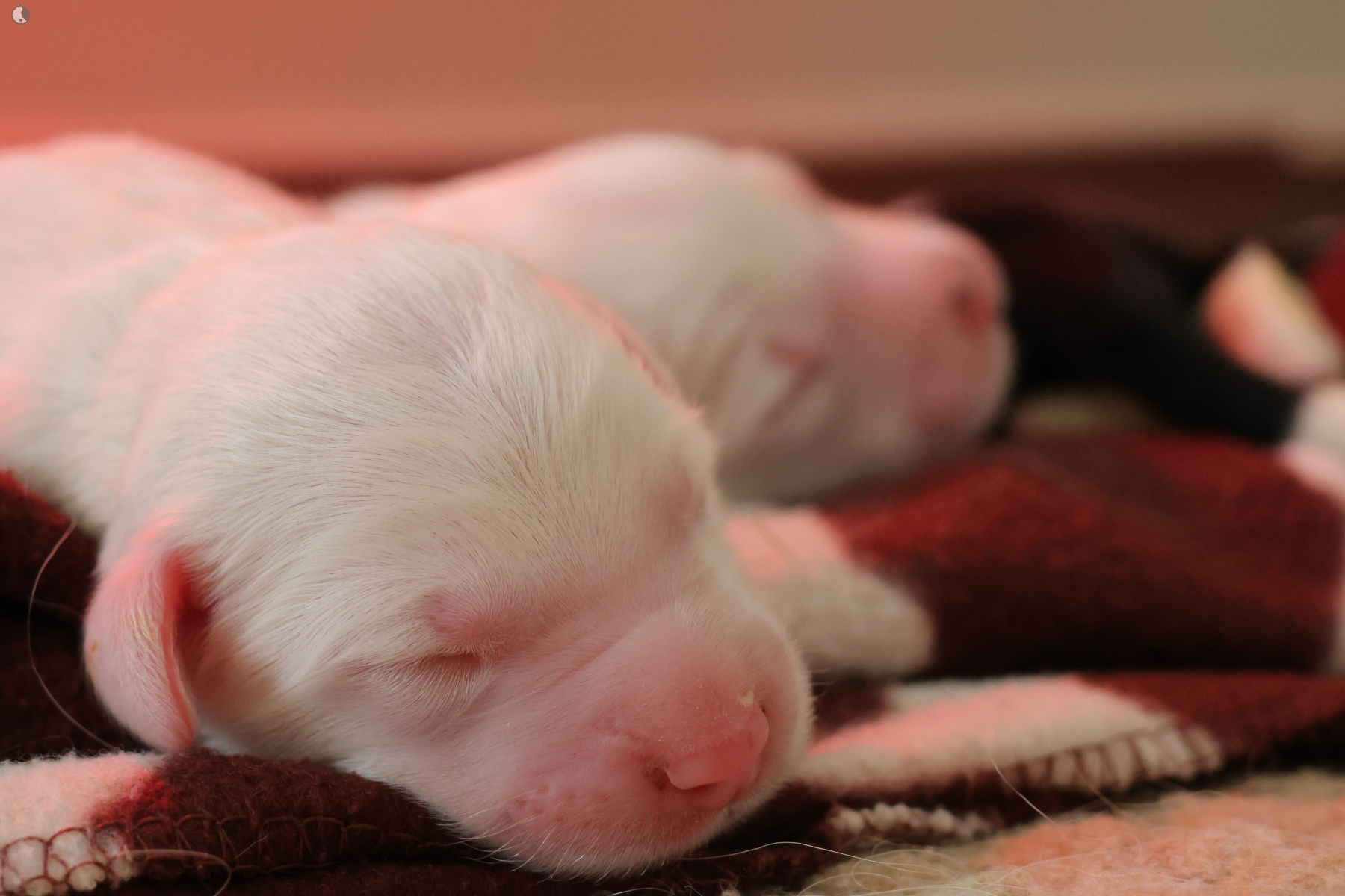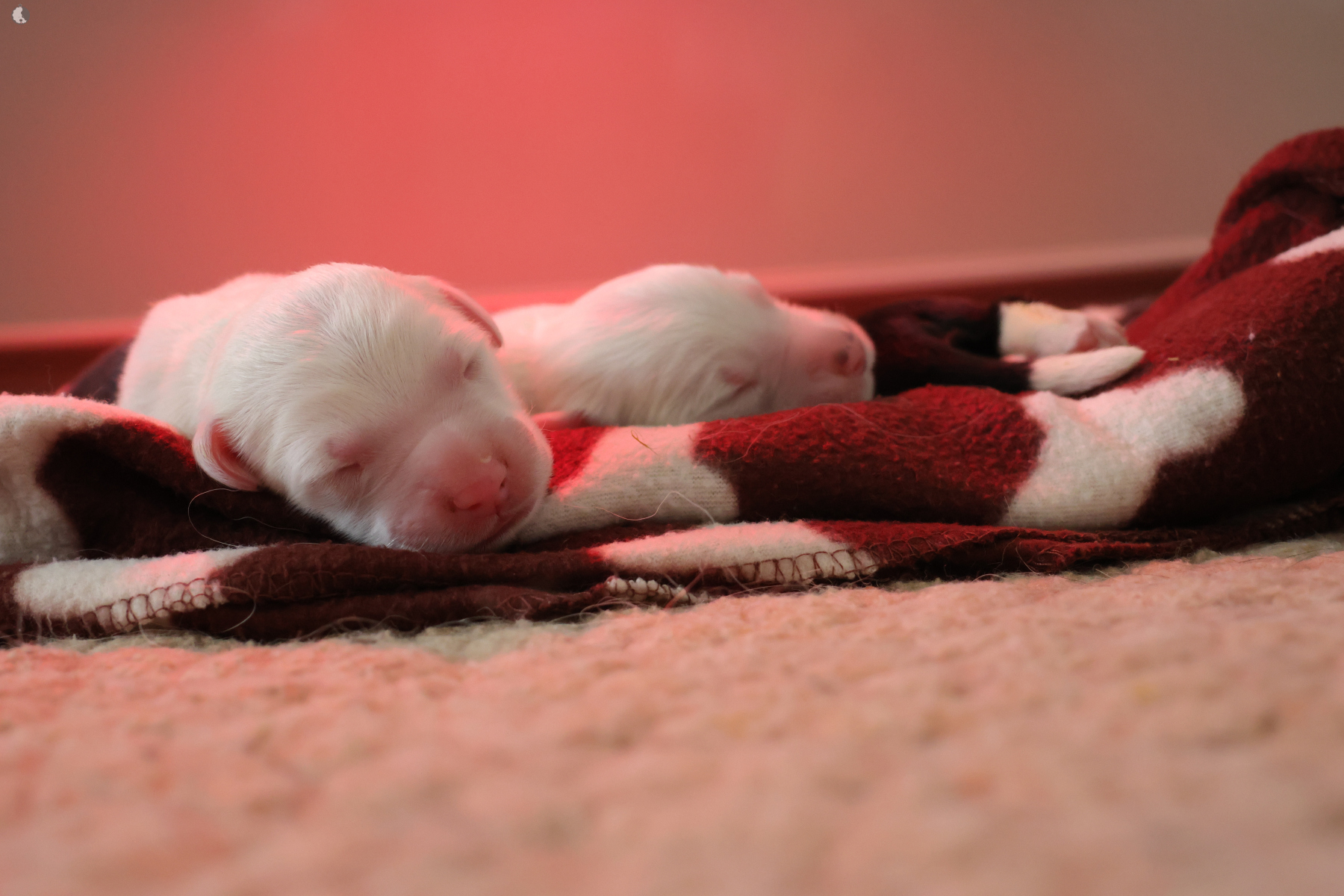 The puppies were born without fetal envelopes, so each puppy immediately had a lot of attention 🙂. Antea retained the placentas, so she received an injection and antibiotics. After 3 days, the sona check showed that the uterus was clean and in order. Antea is a gentle and careful mother, and despite the temperature she had after giving birth, she did not stop taking care of her little ones. Only she was very hot in the box where the red infrared light was shining. Yesterday, Moninka and Lana got acquainted with the girls.